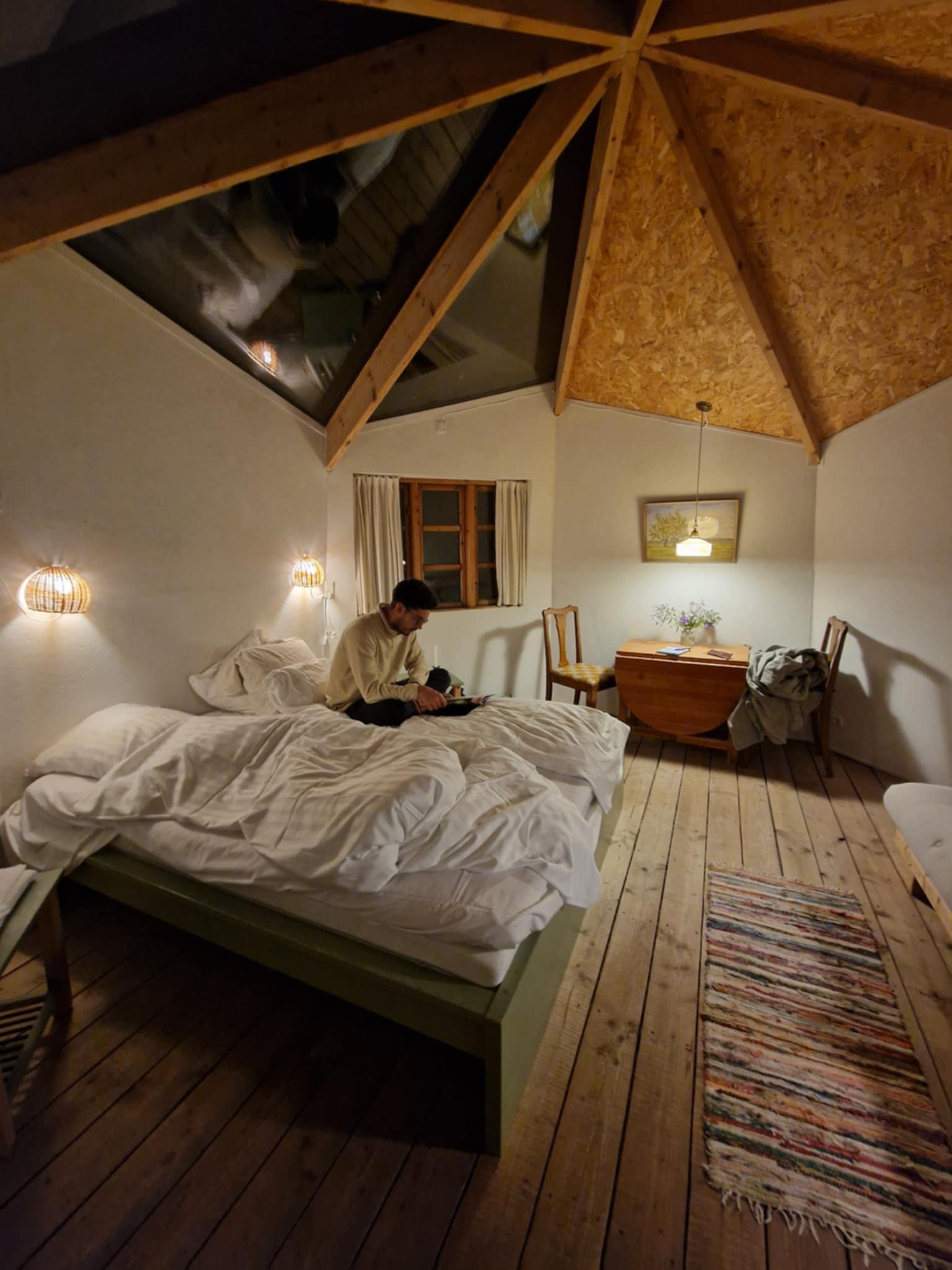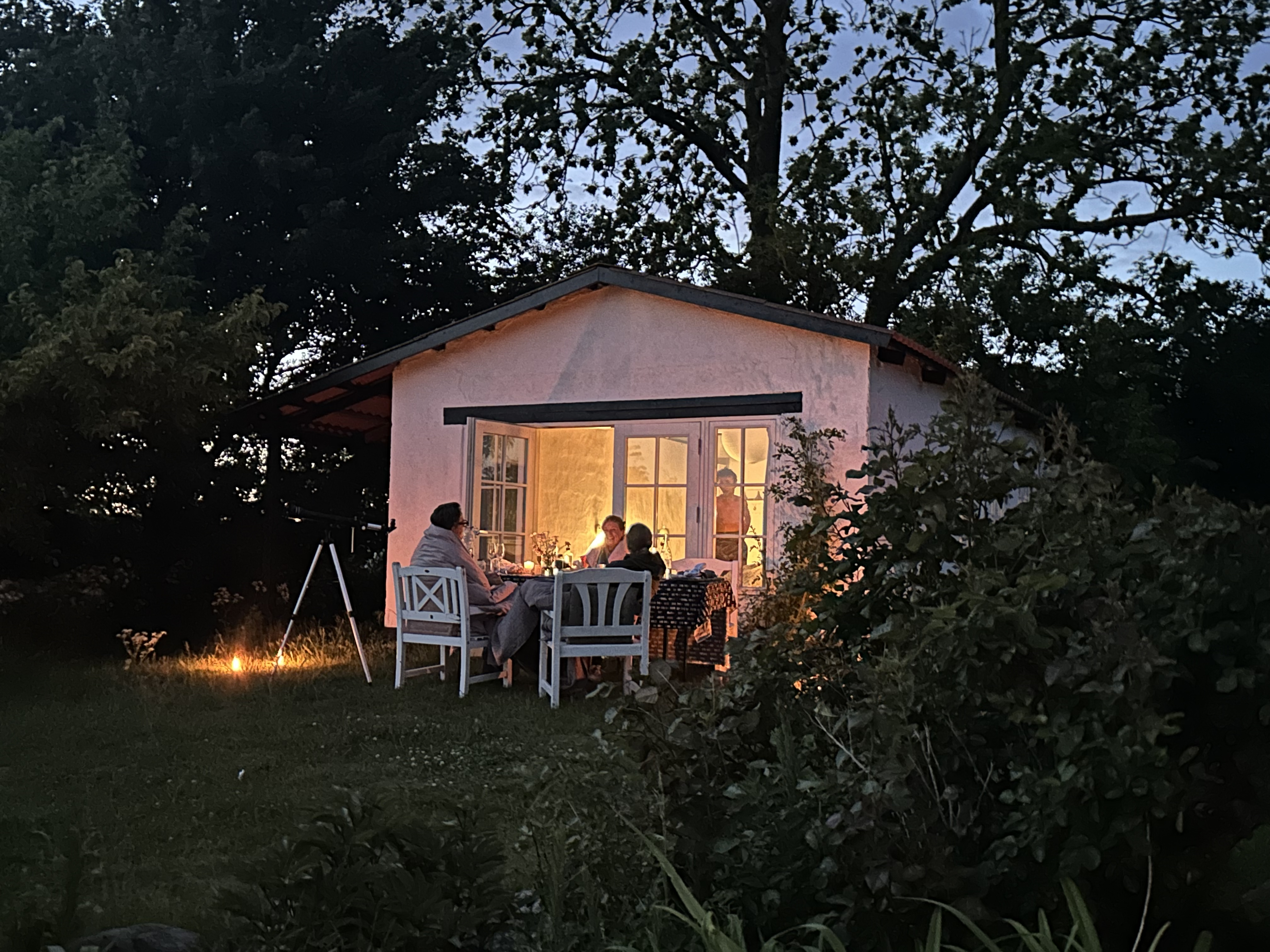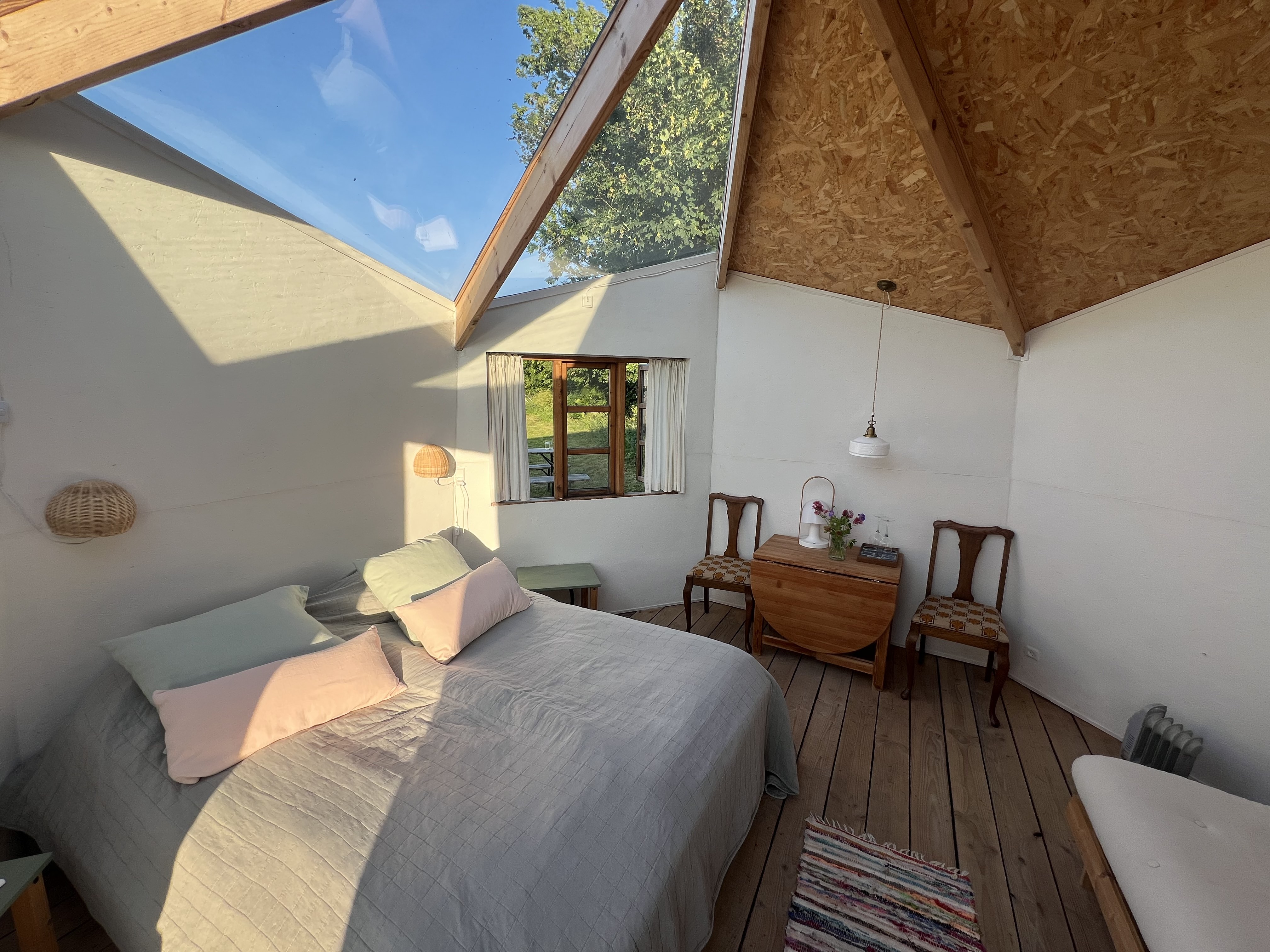 Hytte har klart plastplader i taget over sengen med chancer for at se stjerner igennem. Stjerne kig er bedst udenfor på grunden, hvor vi også har hængekøjer til samme formål samt en stjernekikkert.
