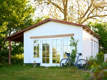 Gerne können Sie in der Dark-Sky-Kabine übernachten – mit Aussicht auf den klaren Sternenhimmel durch das Glasdach im Dunkeln auf Møn. Genießen Sie die entspannte Atmosphäre im Camønogaarden.