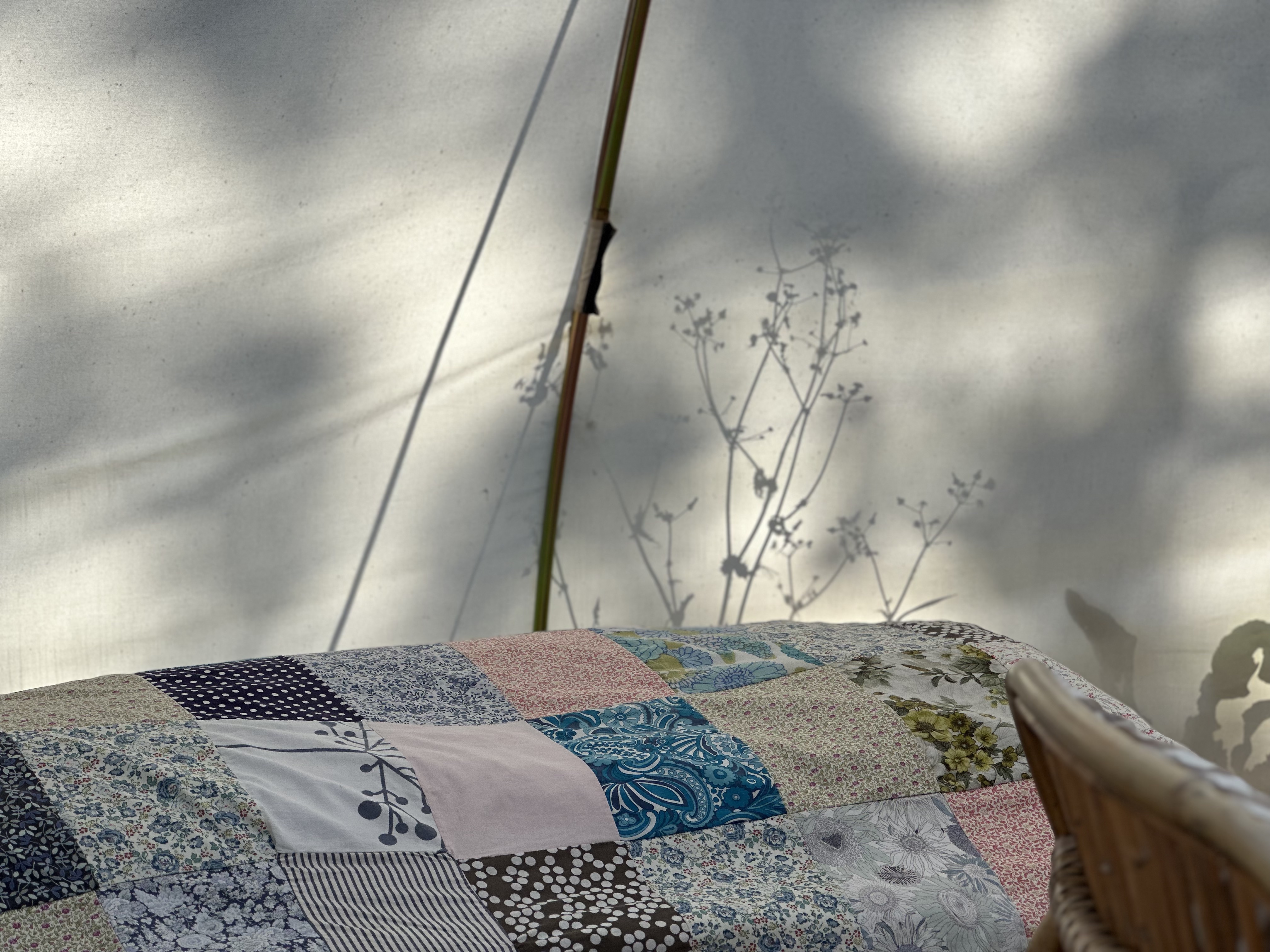 The tent is for 4 people. There is a lovely large double bed and 2 single beds, both with duvets and pillows.