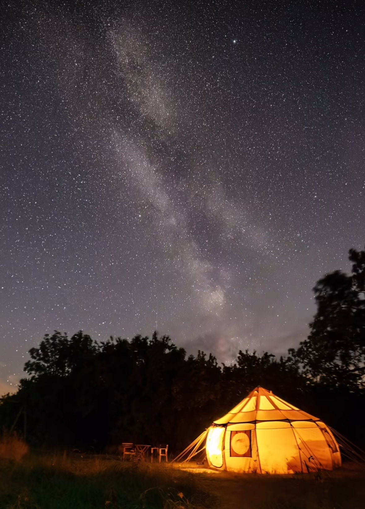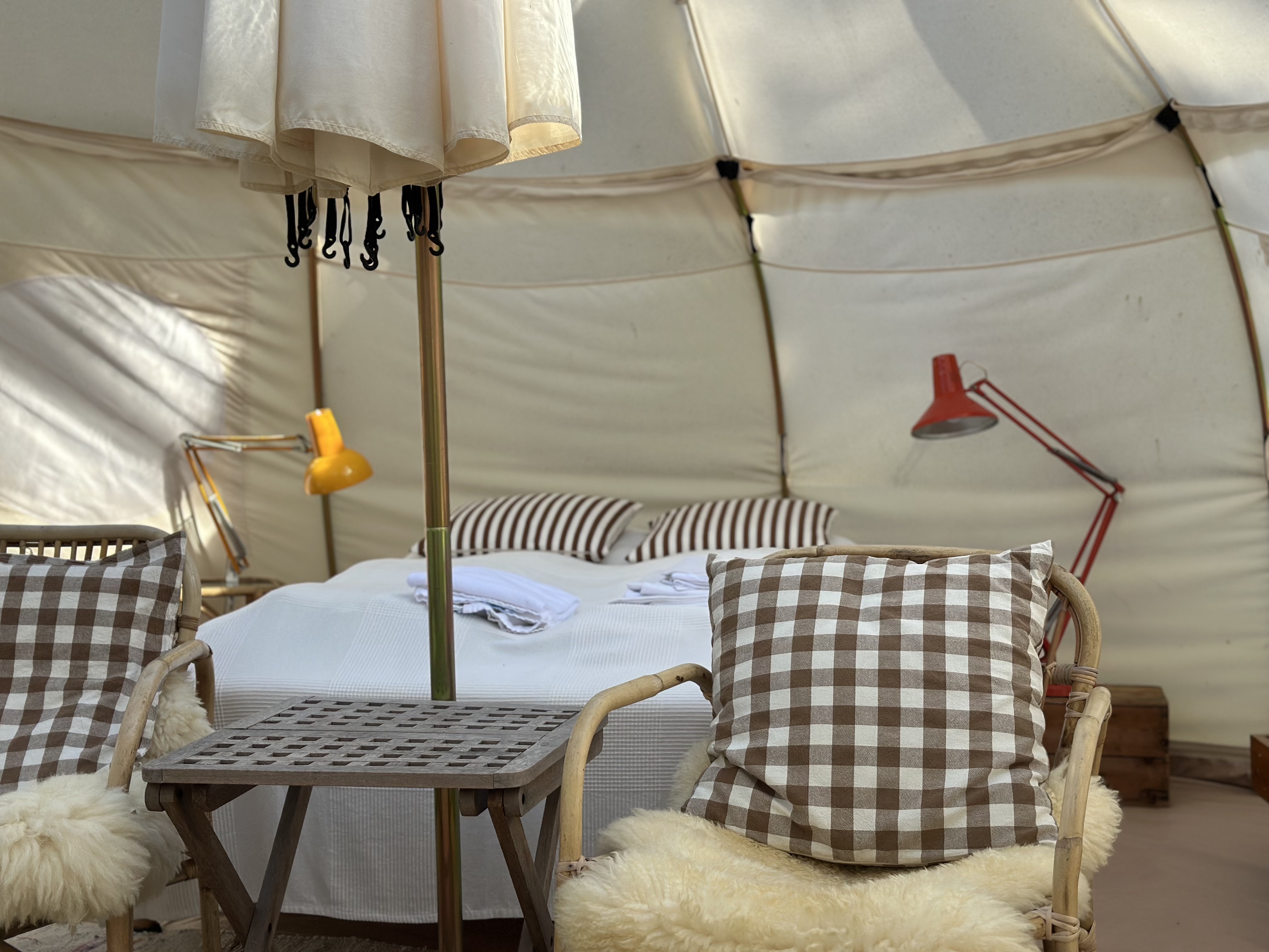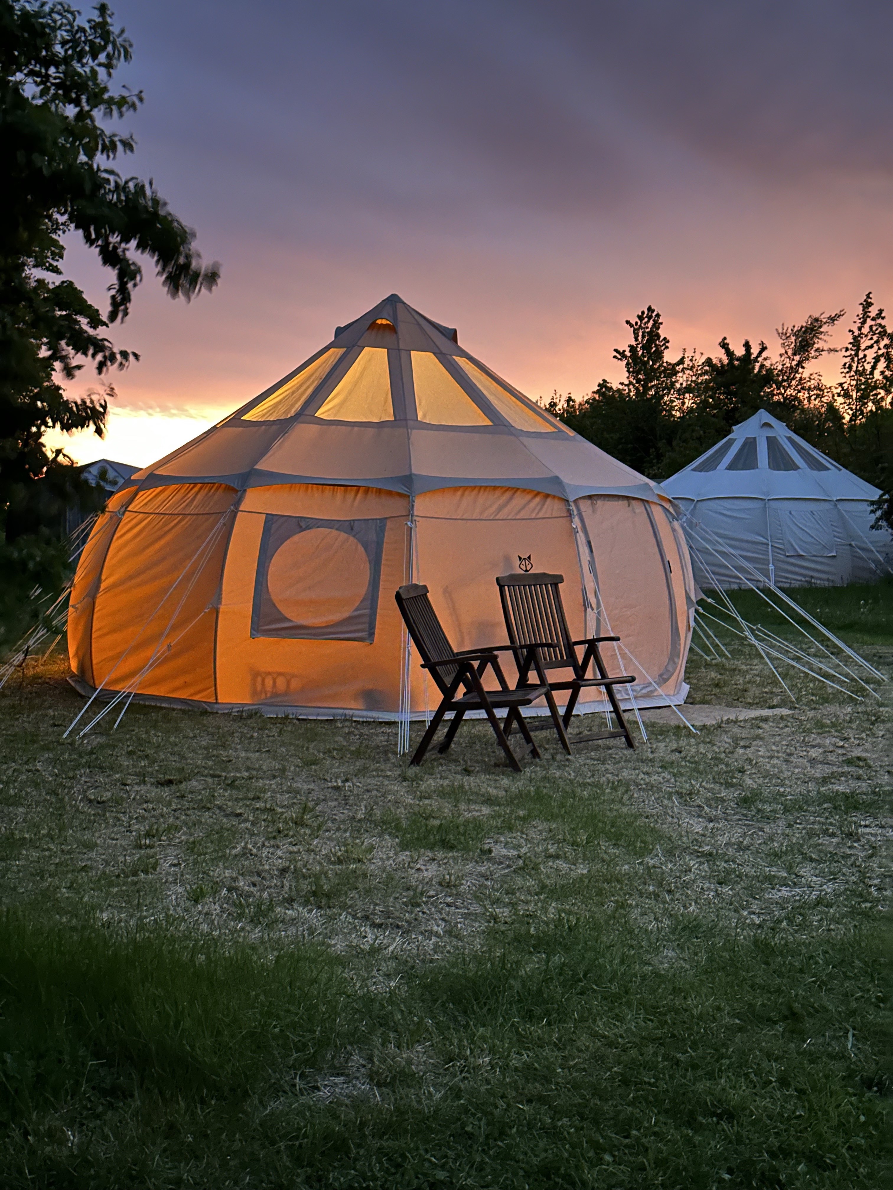 At our camping area you will find 2 cozy large canvas tents with a view of the stars. The tents have skylight windows, where you can easily see the stars through.